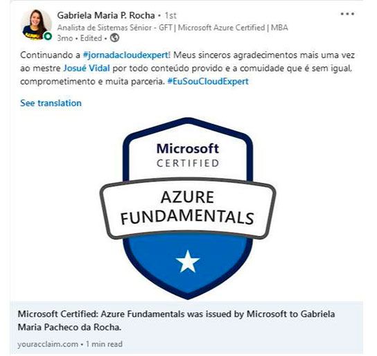 🚀 O Método Que Mudou Minha Vida Depois de estruturar um plano de aprendizado baseado em projetos reais, comecei a me destacar no mercado. ✅ O LinkedIn começou a trazer recrutadores. ✅ Os convites para entrevistas começaram a surgir. ✅ E logo, eu estava trabalhando em uma das melhores empresas de tecnologia. A transformação foi tão grande que comecei a ajudar outros profissionais a fazerem o mesmo. Foi assim que nasceu a Comunidade Cloud Expert PRO. E sabe o que aconteceu? Pessoas que estavam perdidas e sem experiência, conseguiram suas primeiras oportunidades e duplicaram seus salários. Eu vi que não era só sobre aprender Cloud, mas sim sobre seguir um método claro, eficiente e testado.